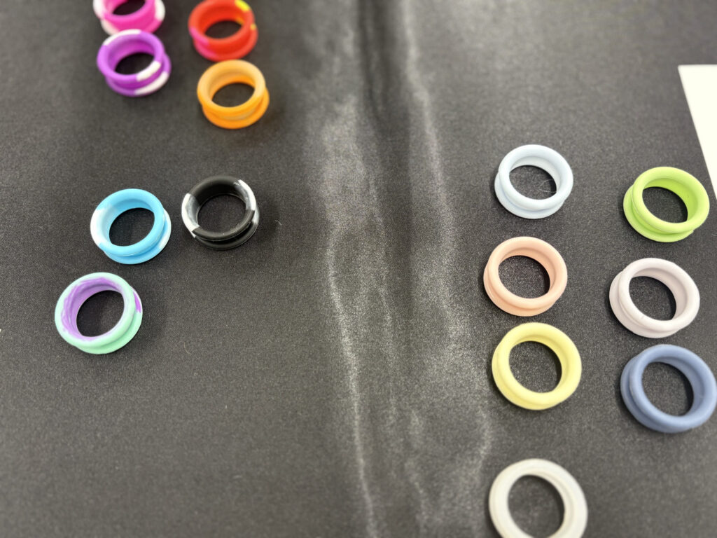ハサミの指穴のサイズを調整し、コントロールしやすくするためのシリコン製シザーリング