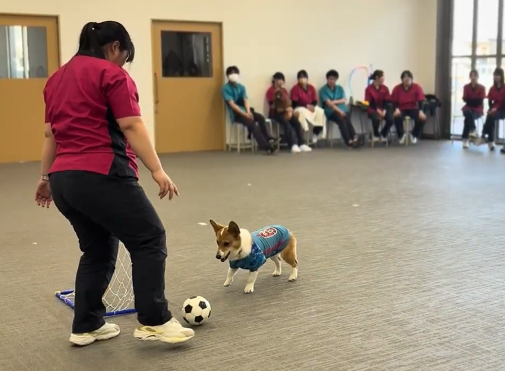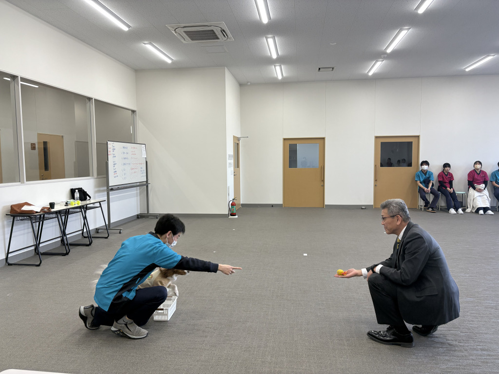 校長先生、副校長先生だけでなく、健康管理学科の先生たちやしつけインストラクター専攻の1年生などたくさんの人に見守られながらコンペがスタートしました!