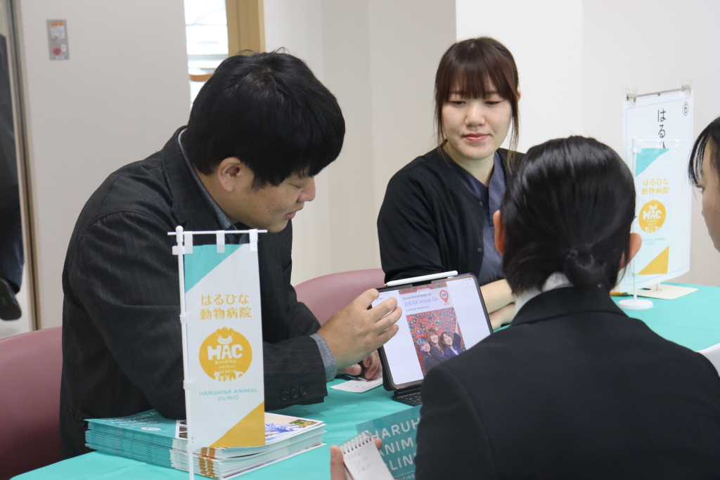 動物看護カレッジ動物看護総合学科の2年生、動物健康管理学科の1年生を対象に校内企業説明会が行われました。