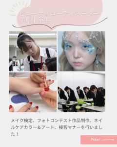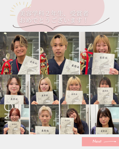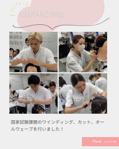 穴吹ビューティカレッジでは、各学科で目指す技術をコンテスト形式で競う技術試験【穴吹コンテスト】が年に2回実施されます✄