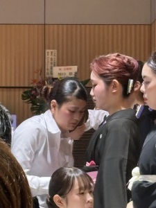 卒業以来関東にて美容師として活躍している先輩の大熊亜由美さんにも早朝からヘアメイクを担当してもらい気合十分🪮✨