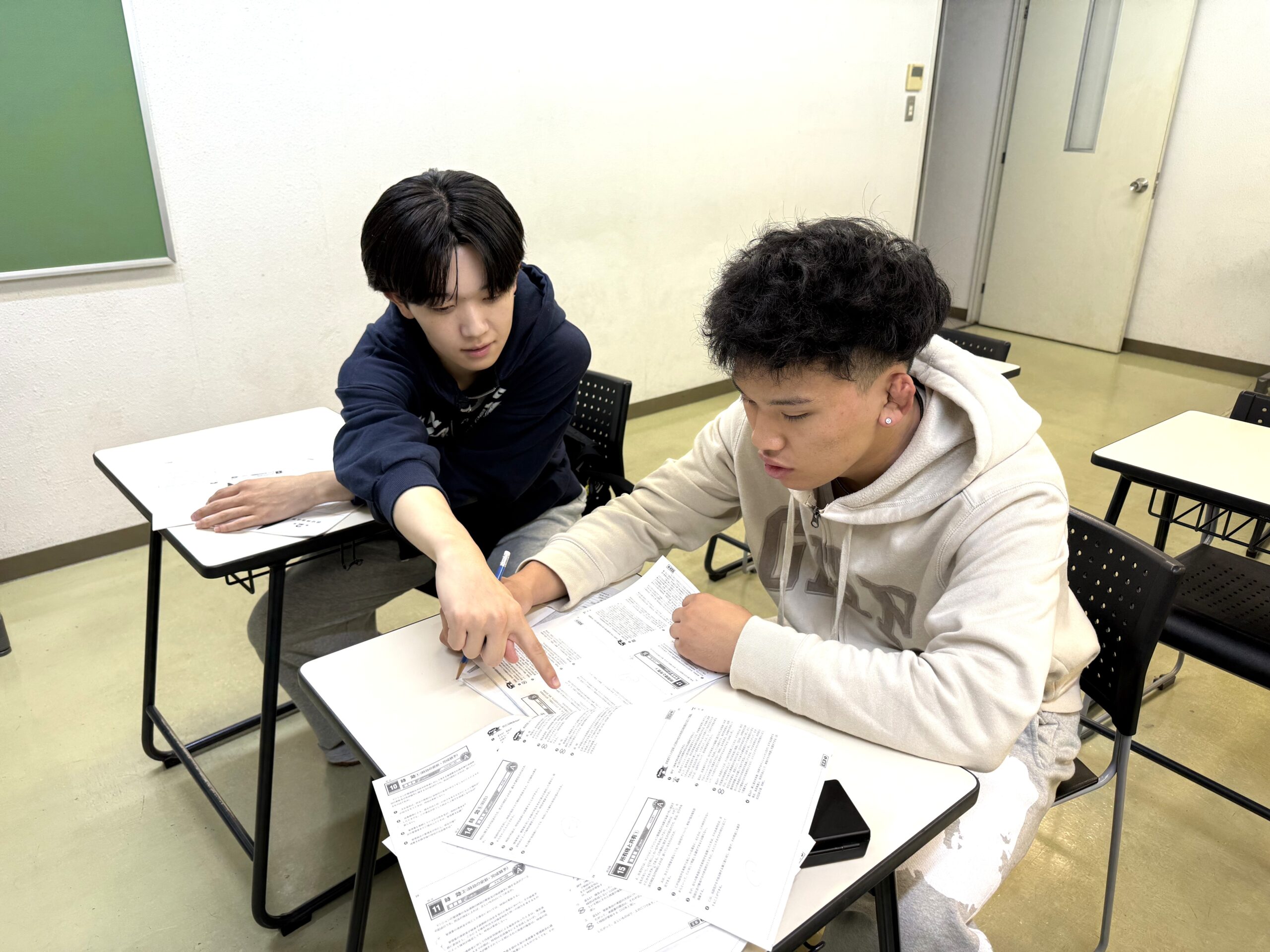 学校に来れる機会が少ない中、宅地建物取引士・管理業務主任者の勉強方法や、就職活動での面接のコツを教えてくれました😆