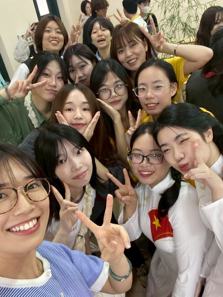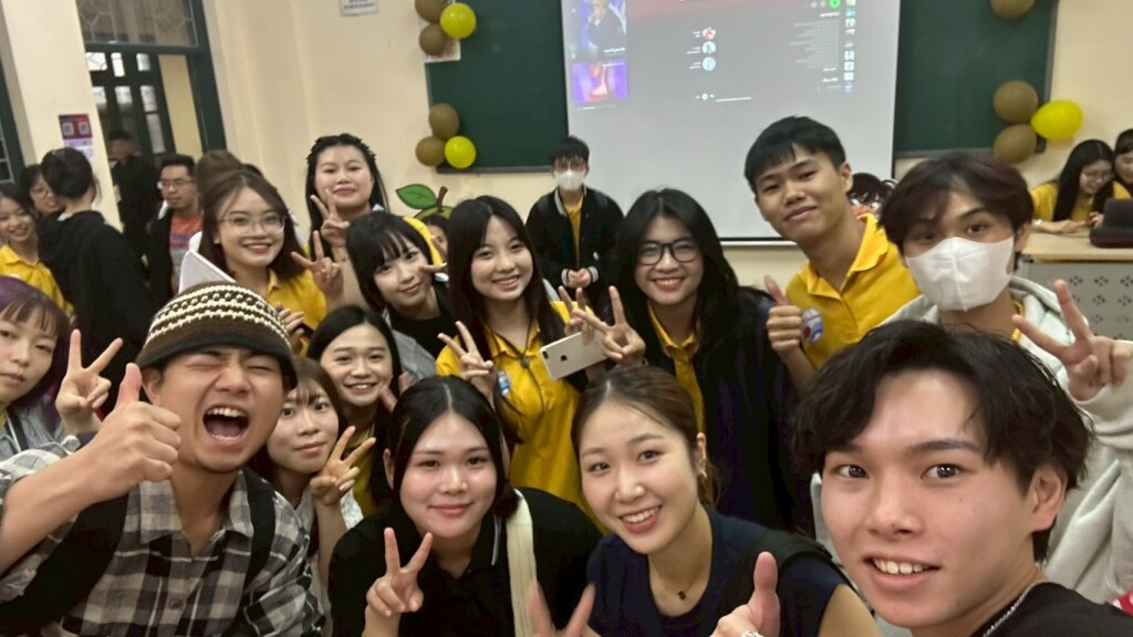学生たちは、ベトナムの姉妹校で国同士の文化をクイズで紹介したり、お菓子を食べてもらいながら知ってもらったり様々な工夫をしてプレゼンテーションを行いました。