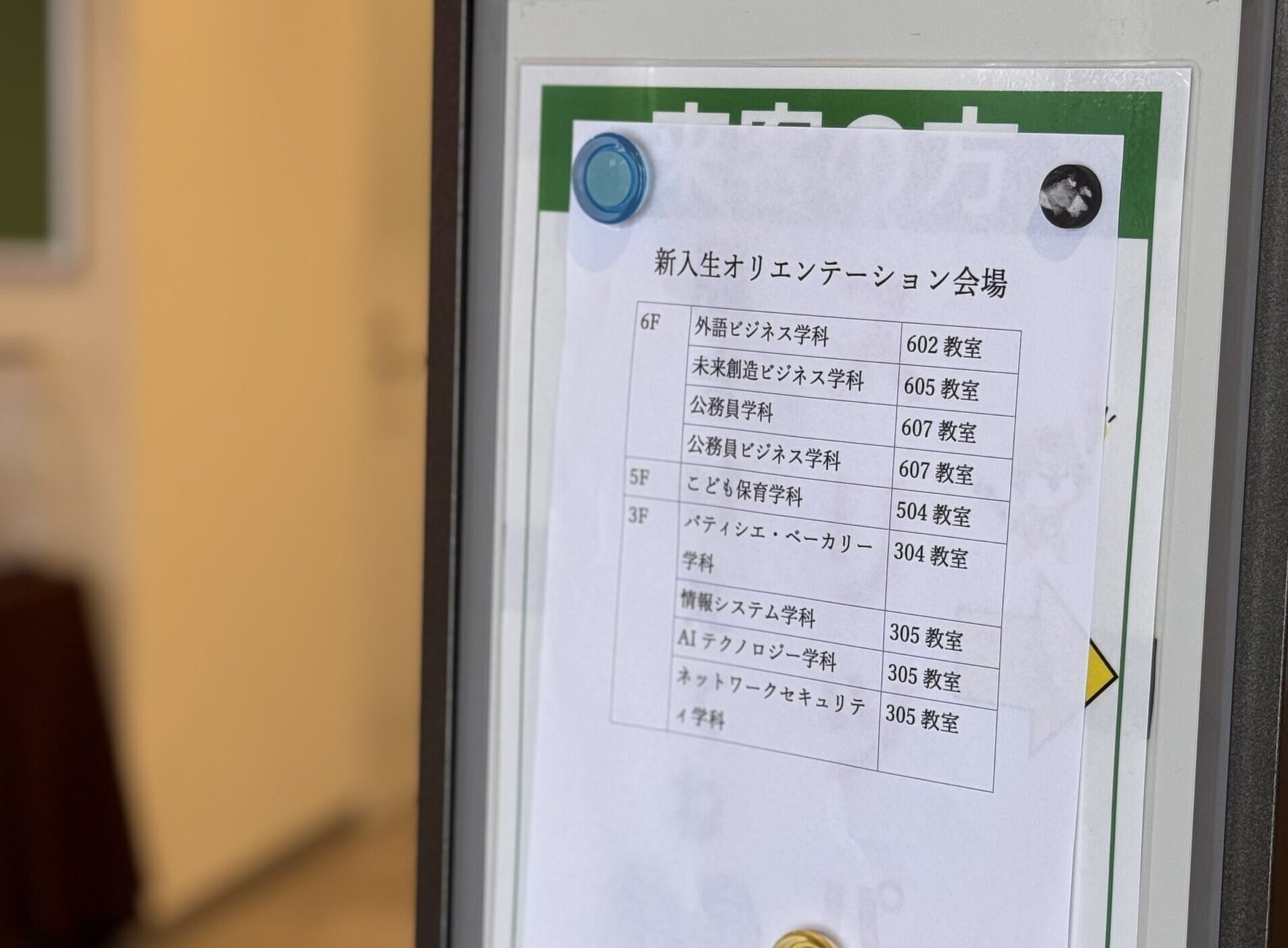 全9学科/200人以上の大所帯となり、それぞれ学科ごとに教室に分かれてオリエンテーション。