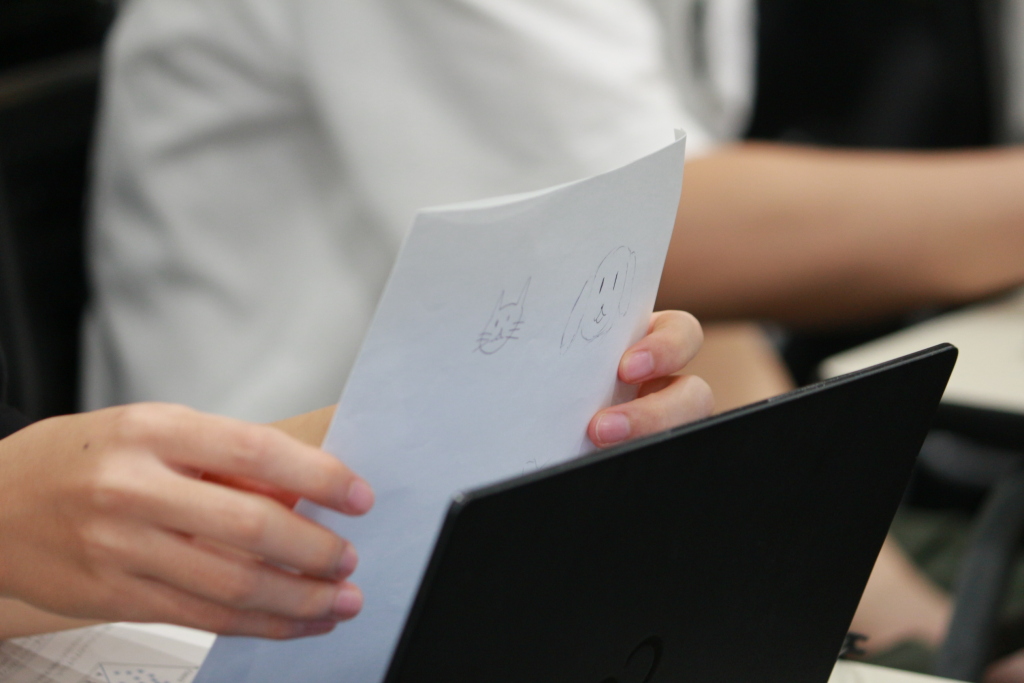 指定された項目(キツネ・猫・犬・ライオン)の画像をTeachable Machine(ティーチャブルマシン)に認識・学習させて、その動物かどうかを判別できるようにしていました!