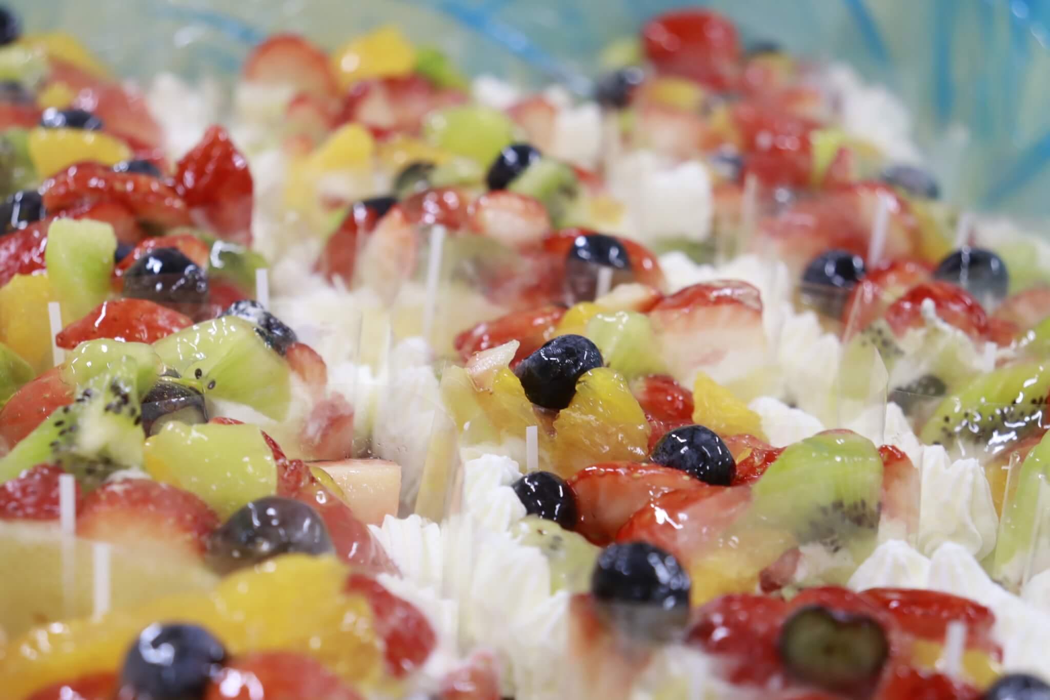 スポンジ焼成ナッペ、被膜、絞り、パイピングの技術演習をする。