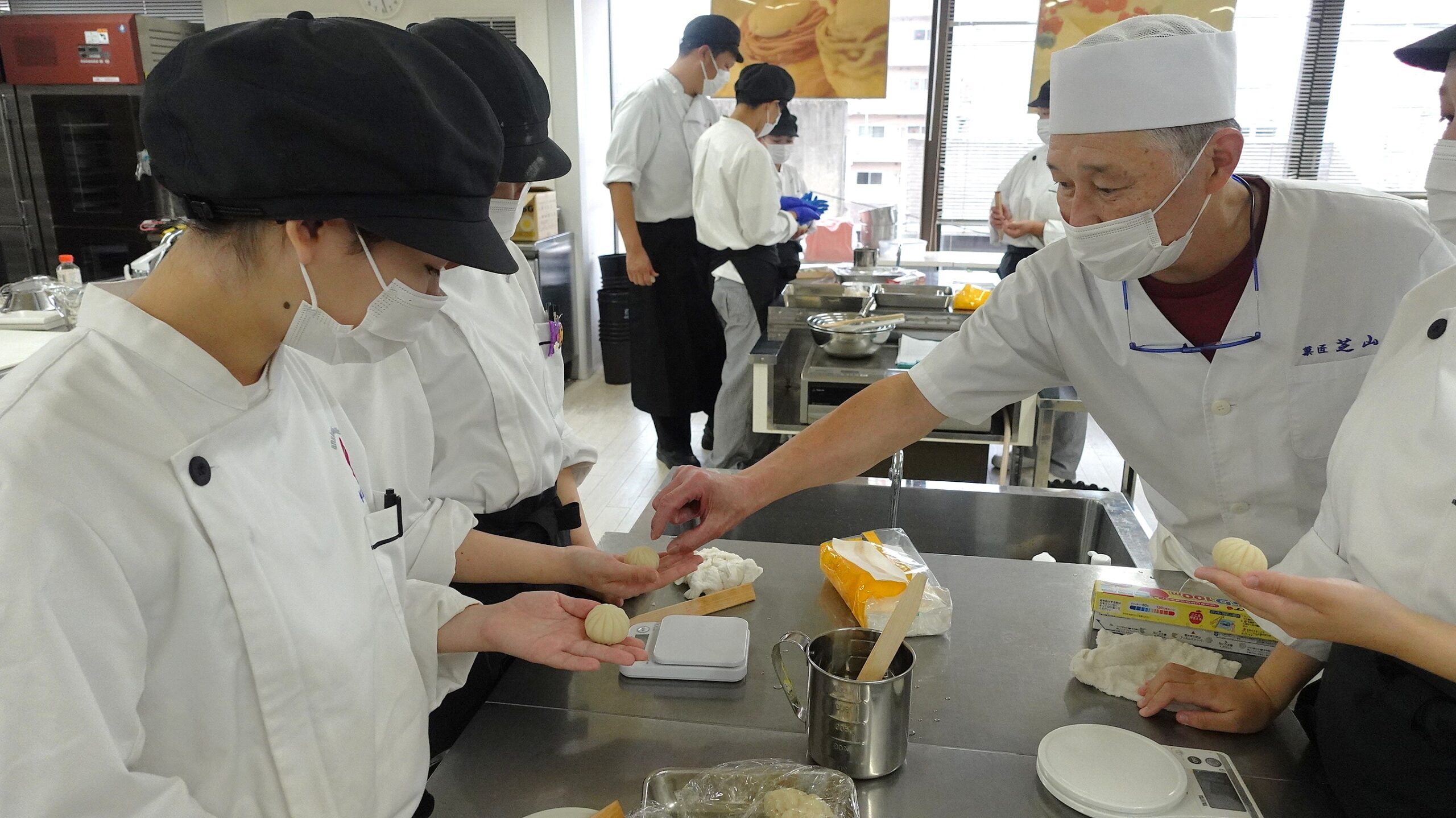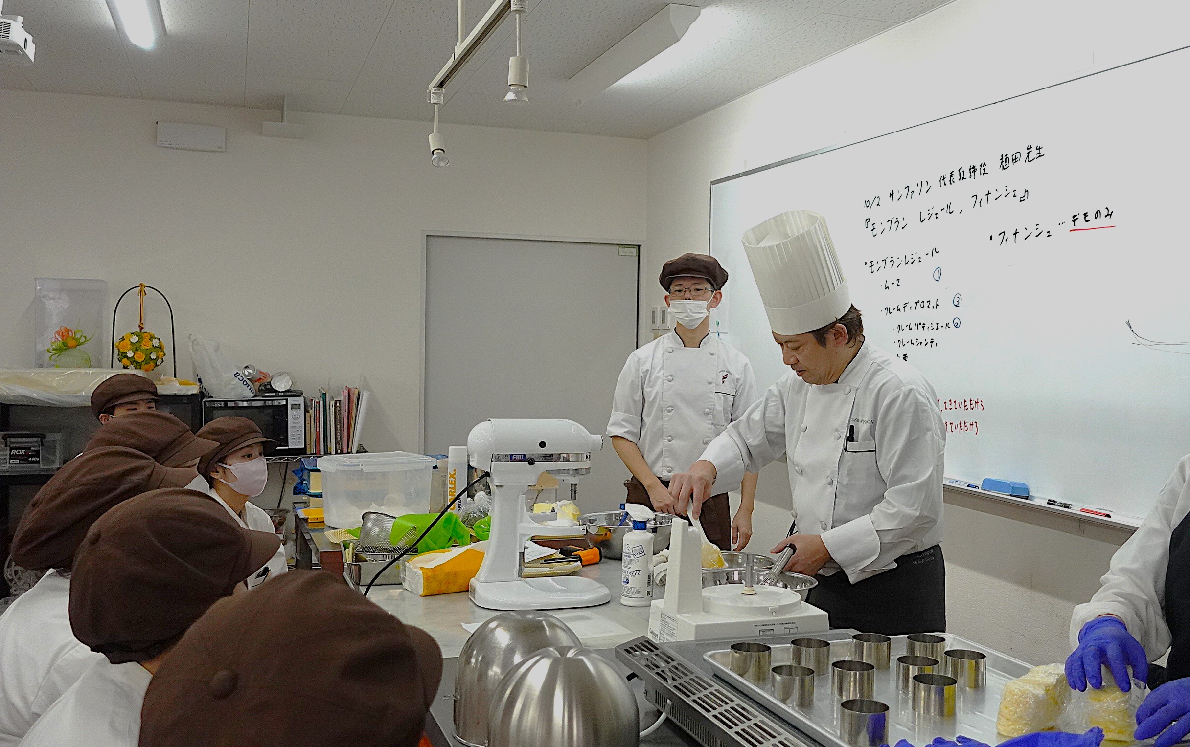 洋菓子の基礎から応用まで。県内有名店のパティシエから、実際に店舗で作っているレシピをもとに教わります。先生たちの手つきをよく見て、技を覚えていきましょう!