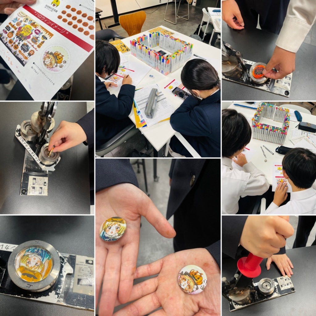 グラフィック&マンガ系の体験授業を選んでくれた生徒さん達はハロウィンに向けて「オリジナル缶バッジ」を制作しました