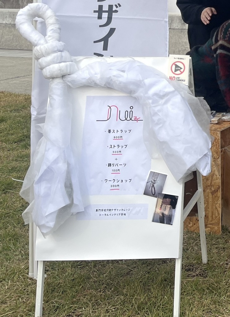お店の名前は「Nui / ヌイ 」。授業で制作した帯ストラップやアクセサリー、マグネットなどを販売しました。