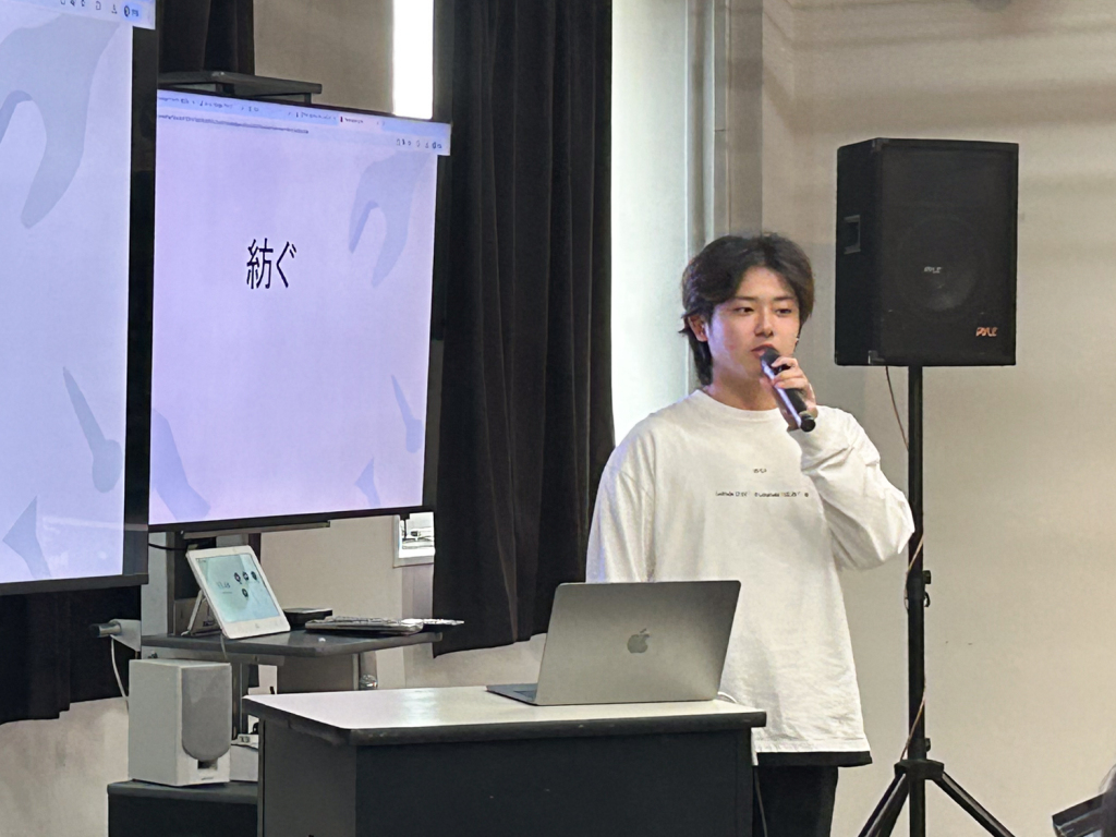 今年のテーマである「紡ぐ」から、それぞれが何を想像し、どのような目的をもって制作したかを、1,2年生一人一人が発表しました。