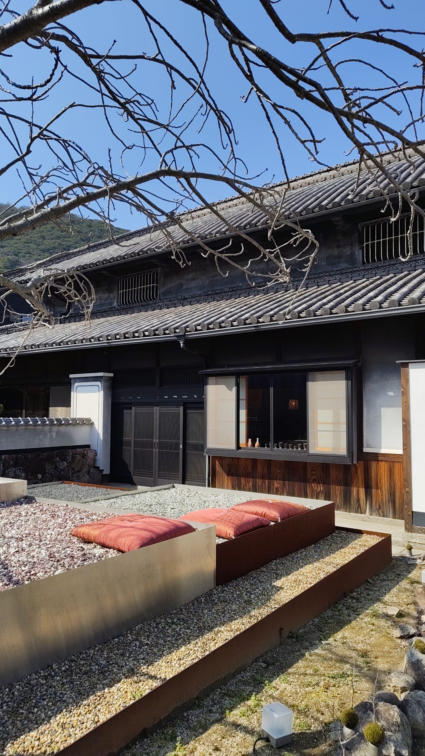 2026年2月。梅月会、という地元工芸作家などの展示を含めたイベントの案内を頂いたので、風はまだ少し冷たいものの、日差しが僅かに春の暖かさを感じさせる午後のある日、ふと訪れてみました。偶然にも、月さんがいらっしゃって、隅々まで案内していただくことができました。実は月さんには、地域デザイン学科を立ち上げる際にいろいろ相談に乗ってもらった経緯もあります。午後の日差しの中で庭に出て雑談をしている時に、「このあたりの地域を学生たちと一緒に何かできませんかね」ふと月さんからそんな話しが出ました。