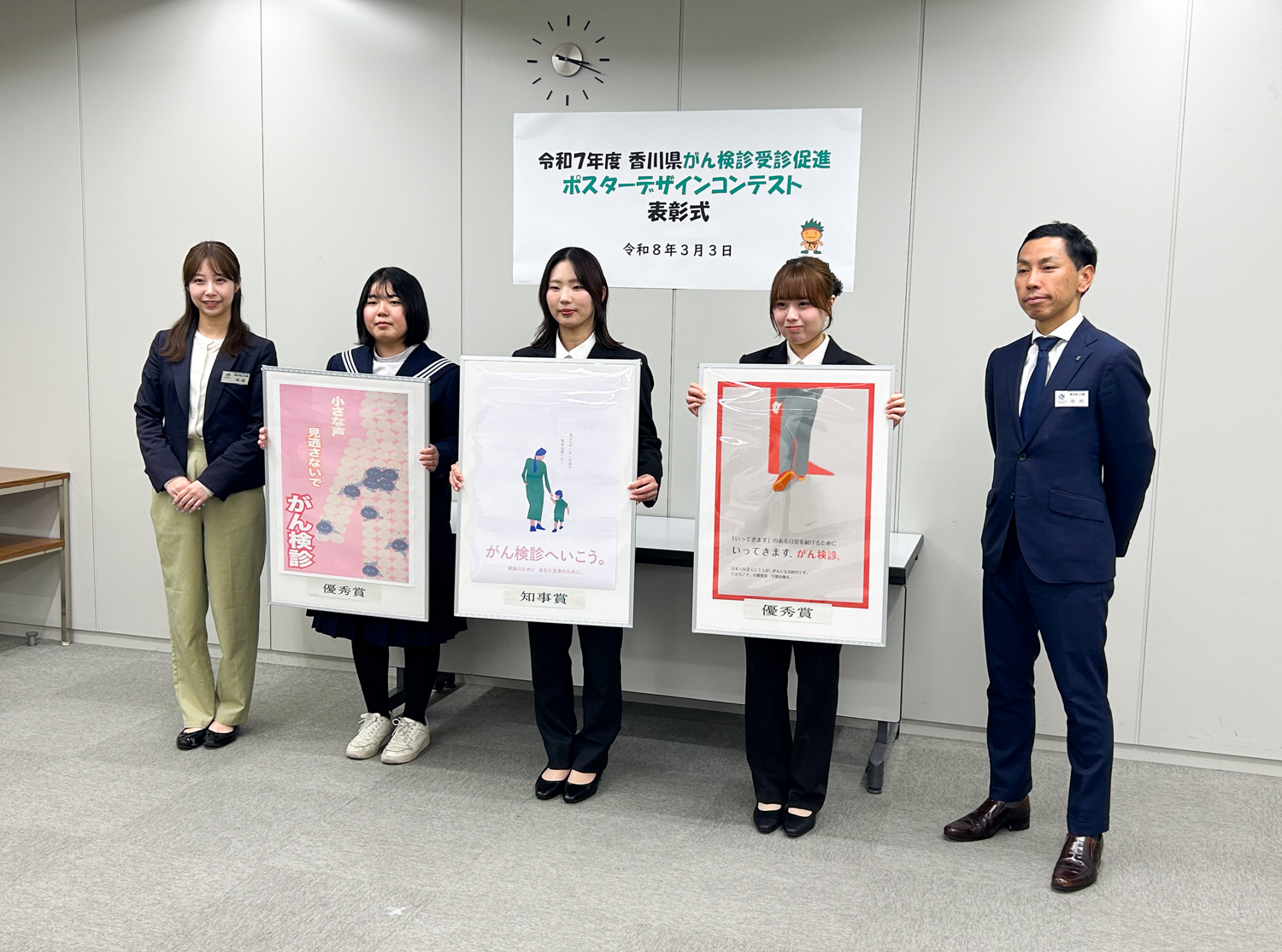 グラフィックデザイン学科の学生が香川県主催 令和7年度香川県がん検診受診促進ポスターデザインコンペで賞をいただきました。