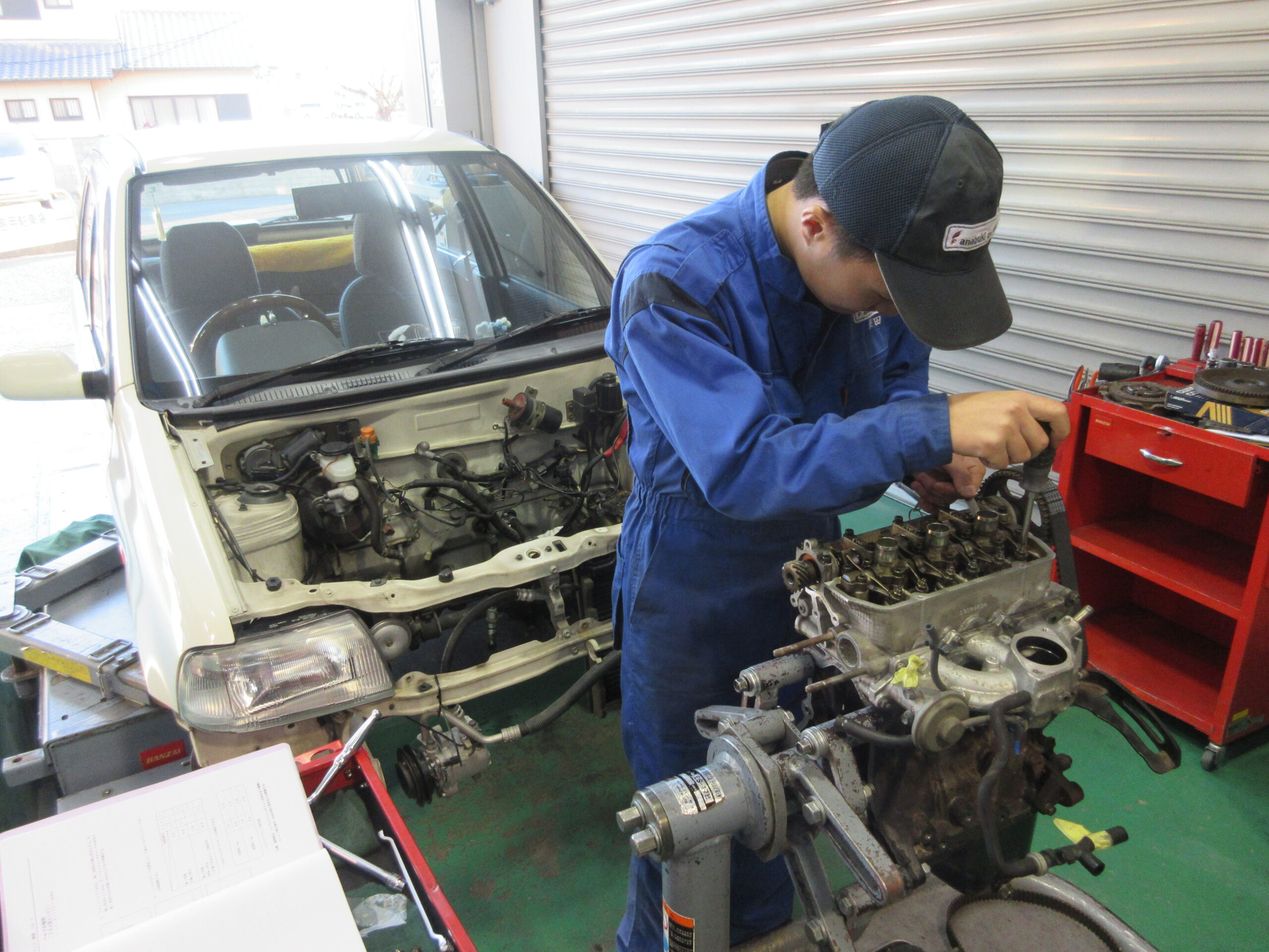 在校生が所有している平成5年式の車両の、冷却水とオイル漏れ修理を兼ねて、ピストンリングも交換中です!