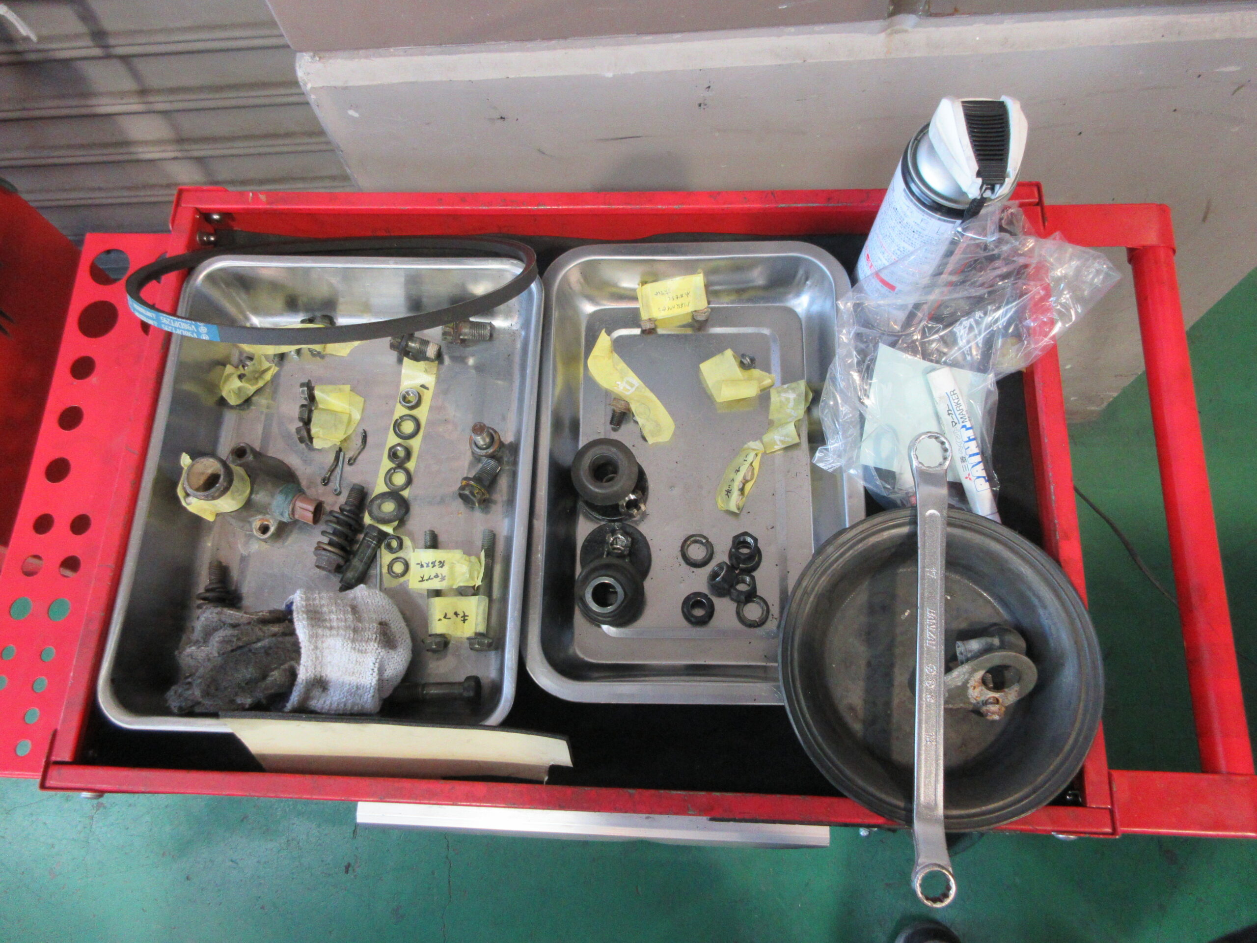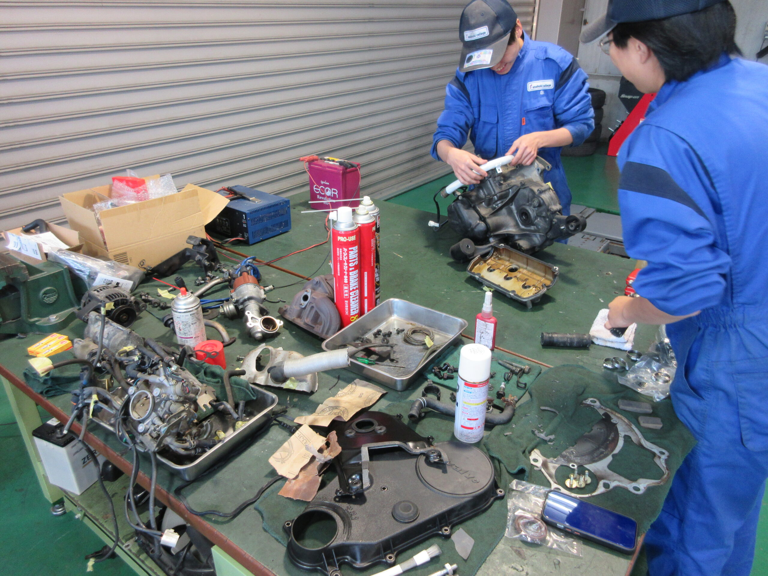 今回は実習の内容と在校生の車両の修理部分が一致していたので在校生の車両をみんなで整備することになりました!