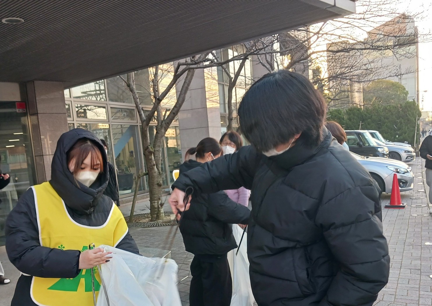当校は、全学科が交代で地域清掃に参加をしています。今日は、看護学科4年生、最後の地域清掃でした。