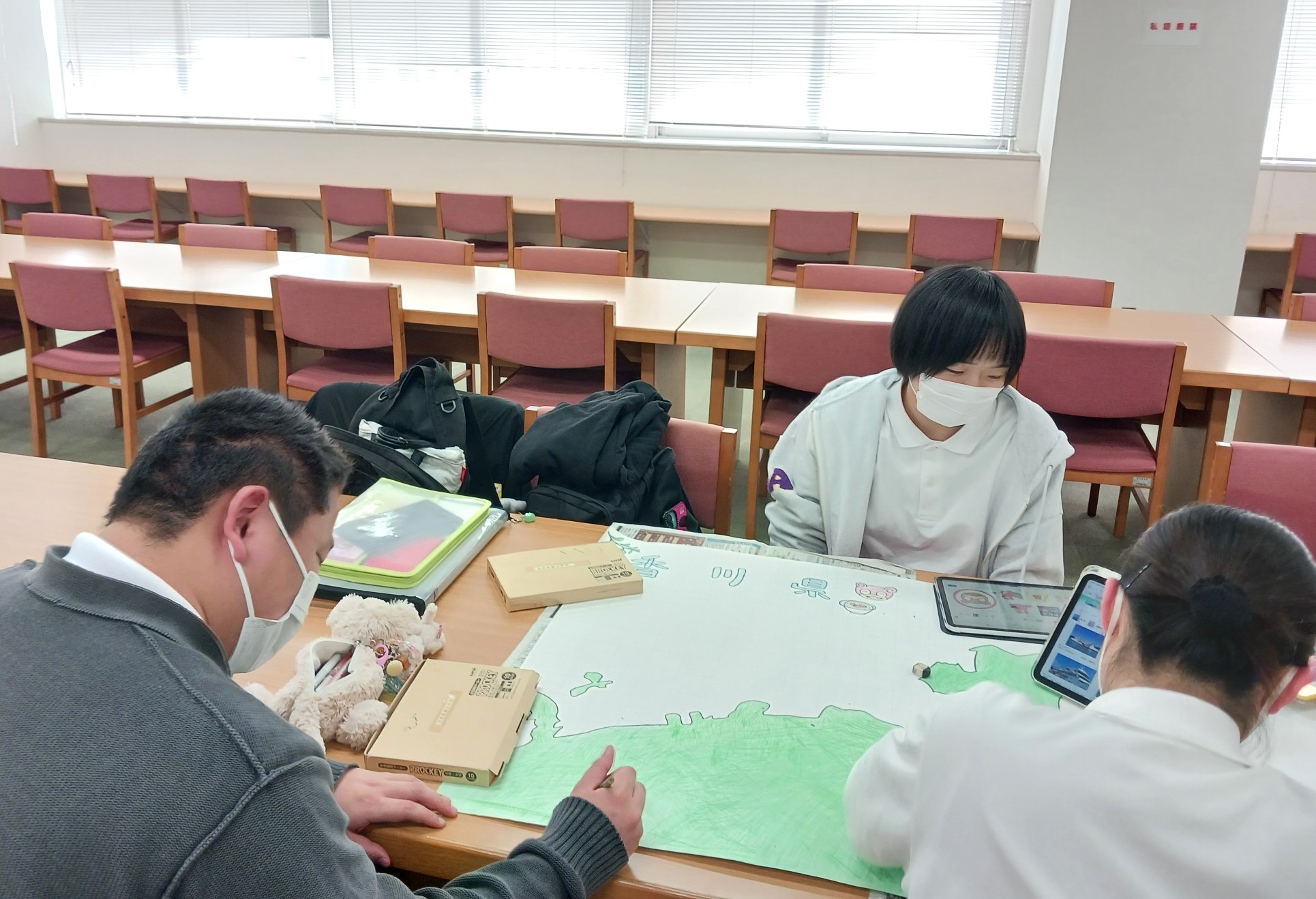 3年生になると、高松市の高齢者居場所づくり事業に参加し、地域貢献の担い手として地域の「居場所」に出向き、生活指導等の実践実習を行います。臨地での取り組みは1日ですが、そのために何日もかけて準備をします。まずは、コミュニケーションをかねて自己紹介をします。これはその資料作りです。学生の出身地周辺を紹介、改めて地元の良さを再確認!上手く、紹介できるでしょうか…。
