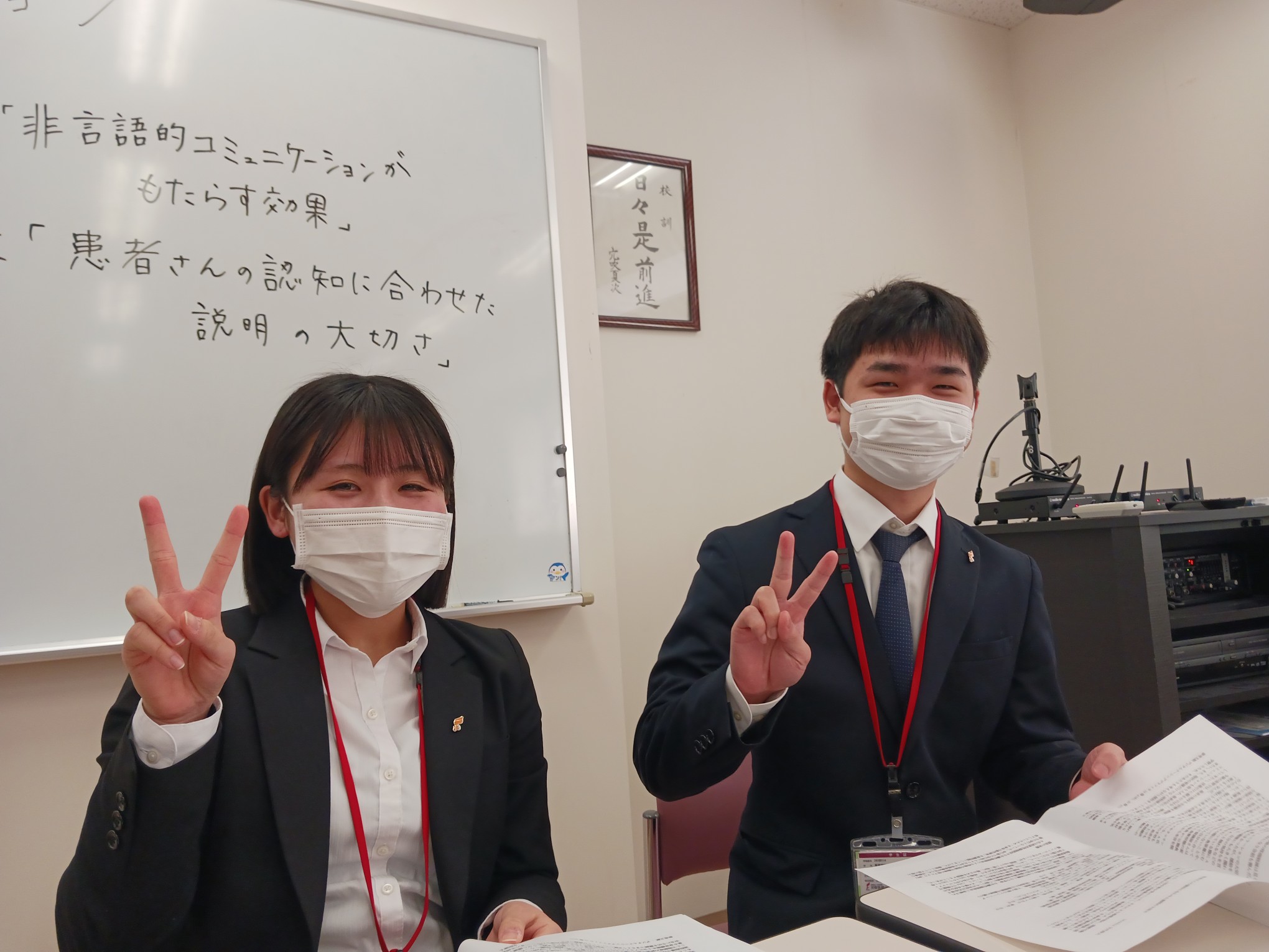 午前でリクレクション発表が終わりました。ホッとした笑顔、みんなピース✌サインでホッとしています。
