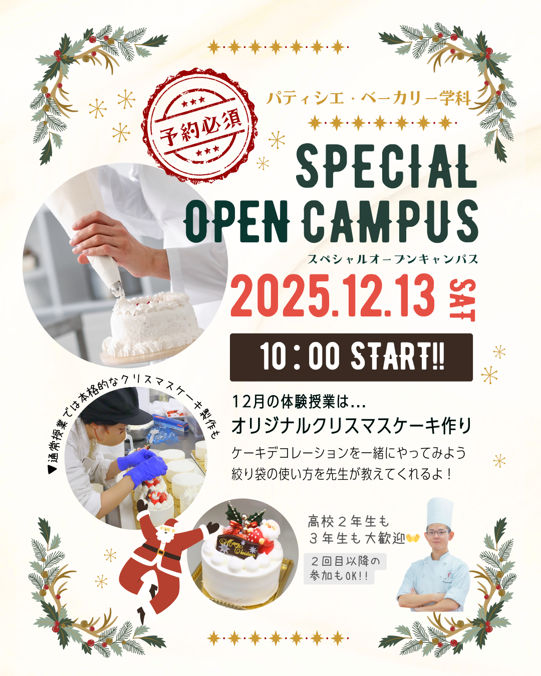 12月13日(土)のオープンキャンパスは、クリスマススペシャル企画」をご用意しています😊🎄
