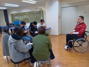 理学療法学科、作業療法学科の2年生合同により 「脊髄損傷当事者から学ぶ」授業がありました。 毎年恒例ではありますが、授業を受ける学生さんは意欲的に質問していました。 初めて知ることや、授業で学んだことを思い出したり、自分の理解を再確認できる貴重な機会となりました。 脊髄損傷といっても、損傷している部位(胸髄や頚髄)によって出来ることや身体症状の違いなどを目の当たりにし、 机上では学べないことを経験でき、本当に良かったと思います。 また、治療中に受けたリハビリについてを質問する学生さんも多く、自分たちの将来像を少しづつ形成できていることも感じられました。![]()