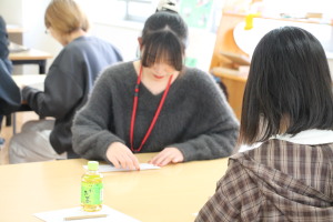 在校生も一緒に参加し、思い思いの紙ひこうきを制作。飛ばし方や形を工夫しながら挑戦しました。