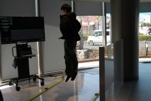 先輩のジャンプを参考にしながら、参加者のみなさんもスクワットジャンプの測定に挑戦。
