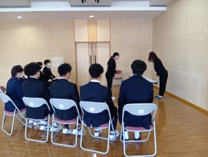 就職活動に向けた心構えをはじめ、正しいお辞儀の仕方や面接時の受け答えなど、実践的な内容を中心に学びました。