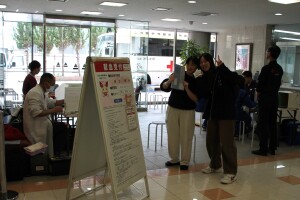昼休み、玄関ホールが何やらにぎやかです。 半年に1度やってくる大型バス。 そう、みんなの命を守る正義の「献血車」です。 リハビリテーションカレッジの学生さんのみならず、 工科カレッジの学生さんも、みなさん笑顔で協力してくれました。 献血したくても「血管が細い」「ヘモグロビン値が低い」などで、あえなく撃沈・・・の方もチラホラ。 その気持ちだけでもしっかり、愛は伝わってますよ。 もちろん、貴重な血液を提供してくださった皆様ありがとうございました。 穴吹リハビリテーションカレッジはこれからも、献血に協力して参ります。